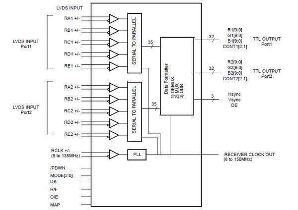 THC63LVD1024是可以支持1080p/60H的Dual Pixel Link LVDS接受IC。可支持多样的可以支持多样化的输入输出格式和数据显示。特别适用于TV、投影仪、监控摄像头。