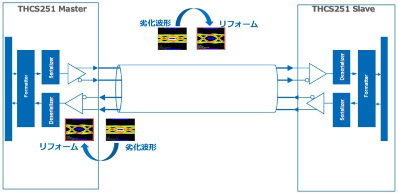 適応型イコライザは、マスタ/スレーブの各受信端で入力波形を監視しています。