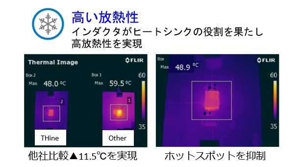 こうした新開発のインダクタを採用することで、エポキシ樹脂でモールディングする既存の構成と比べると、変換効率を2%以上改善できる。