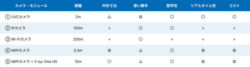 表1 産業機器向けカメラ・モジュールの選択肢