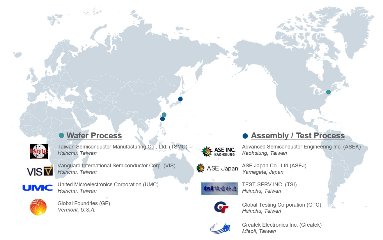 製造拠点は主に下記のFabパートナー様となります。