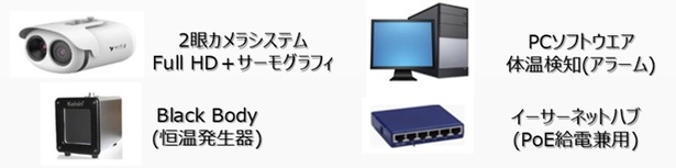 新型コロナウィルス対策と致しまして、大勢の人が集まる場所で、体温の高い人を同時多数かつ非接触で、高速に、検知できるソリューション。2眼サーモカメラとBlack Bodyを組み合わせることで、高い精度での計測を実現。16名までの体温を同時に測定し、感染リスクを抑えます。