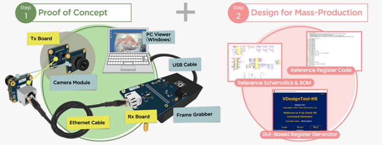 THEVA24-RJ45-SET-V2, a SerDes board set that can extend the transmission distance of MIPI CSI-2 signals,
