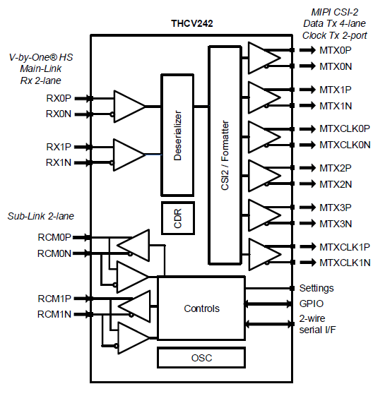 - V-by-One® HS to MIPI® CSI-2 convertion