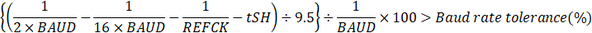 ボーレート誤差は送信側と受信側各々で生成されるボーレートの相対的な差であることに注意してください。つまりお使いのデバイスにおいてクロックソースの公差が送信側が±2%、受信側が±1%であれば、相対的に最大3%の誤差と言うことになります。