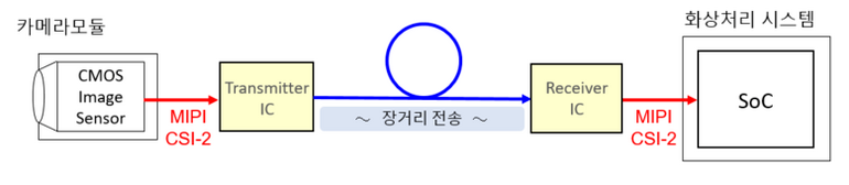 통상적으로 전자기기에 카메라 기능을 탑재하려면 먼저 영상 전송에 필요한 하드웨어를 갖추어야 하는데, CMOS 이미지 센서가 탑재된 카메라 모듈과 영상 신호를 받아 처리하는 ISP(Image Signal Processor)는 물론, 영상 신호의 장거리 전송에 필요한 고속 시리얼 전송용 Tx IC / Rx IC를 선정해야 한다. 일반적인 카메라 인터페이스인 MIPI-CSI2는 최대 30cm 밖에 전송할 수 없기 때문이다.