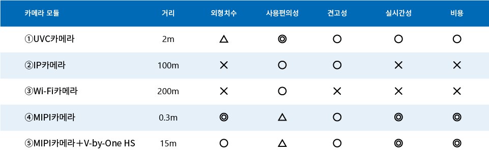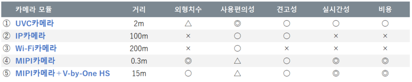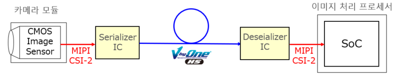 다만, 산업용 장비에 부착 할 경우, 영상처리 프로세서와 거리가 멀어질 수 있는데, MIPI 카메라 모듈의 전송 거리가 최대 30cm이므로, 거리 부족이 예상된다. 이 경우 고속 시리얼 인터페이스인 V-by-One HS를 조합하면 문제를 해결할 수 있다. 전송 거리를 약 15m까지 늘릴 수 있기 때문이다.