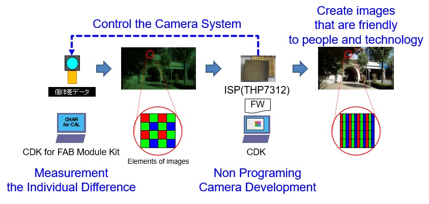 CDK는 소프트웨어 개발 키트(SDK), GUI 기반의 파라미터 설정 툴(3T:THine Tuning Tools), 평가보드(EVB)로 이루어진 것이다. 이것을 사용하면, 프로그래밍 작업을 거의 실행하지 않고 펌웨어를 개발할 수 있다. 전술한 단품별 차이 정보의 보정을 위한 ISP 펌웨어에 대해서는, CDK를 사용하면 그 대부분을 개발할 수 있다(그림3, 그림4).