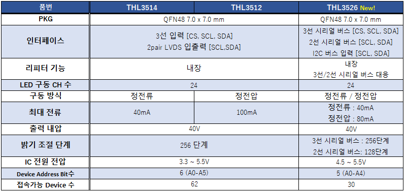 기존 제품(THL3512/THL3514)은 LVDS 인터페이스 채택