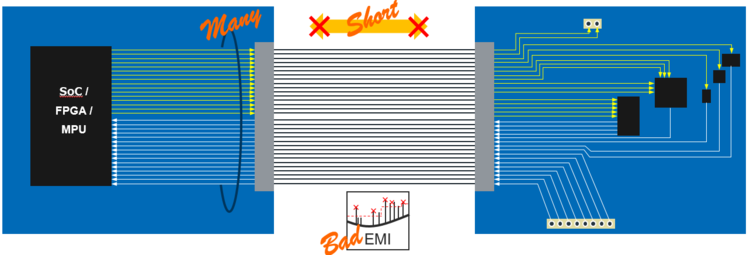 SoC/FPGA/MCU로부터의 IO출력이 많은 설계에서는 기판간/기판내부/기기간의 배선이 많아질수밖에 없어 많은 문제가 발생하게 됩니다. 문제가 되는 키워드로는,
