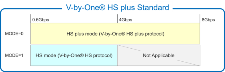 2023년 6월 1일부터 라이센스를 부여하기 시작했다. 기존 V-by-One HS는 계속 사용할 수 있지만, V-by-One HS 규격의 신규 라이센스 제공은 종료되고 V-by-One HS plus 규격으로 일원화된다. V-by-One HS plus규격에서는, V-by-One HS최종버전인 Ver.1.52와 완전호환성이 있는 'HS 모드'와 V-by-One HS plus에서 새롭게 추가된 'HS plus 모드' 두 가지를 정의하고 있으며, 사용자는 이 중 하나 또는 두 가지 모드를 실장 하여 사용한다. (그림 2).