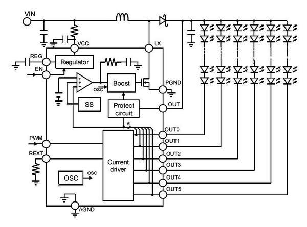 THL6517은 6채널 LED 드라이버입니다. 부스트 컨버터를 내장하고 있어, 백라이트 시스템을 원칩으로 구성 가능합니다. 소프트 스타트/과전류 보호/쇼트 서키트 보호/저전압 입력 오동작 방지/과전압 보호/서멀 셧다운을 내장하고 있습니다. 패키지는 QFN-16핀을 채용하고 있어, 실장면적을 줄일 수 있습니다.