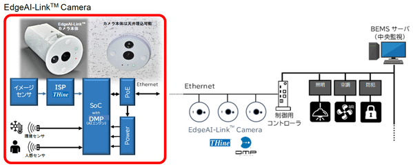 THineグループは、高速インターフェース・画像処理技術の分野で世界をリードするLSI事業とAI・IoTの分野で知的財産を創出し様々なソリューションを提供するAIOT事業との2つの事業を柱として事業を展開していますが、この度、当社企画によるエッジAIソリューションのEdgeAI-LinkTMと株式会社ディジタルメディアプロフェッショナル(本社:東京都中野区、代表:山本達夫代表取締役会長兼社長C.E.O.、以下「DMP社」)のAI技術活用ソフトウェアとの組合せにより、次世代スマートBEMS(ビル・エネルギー管理システム)を始めとするエッジAIカメラソリューションの実現に向けて協業することといたしましたので、お知らせいたします。