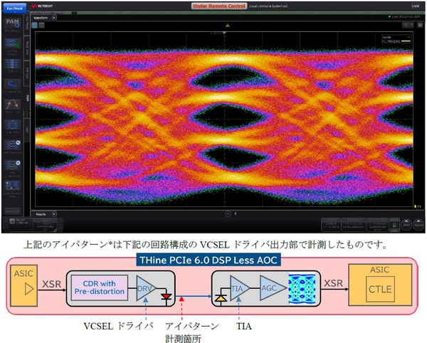今回実現した光半導体チップセットは、次世代通信規格PCI Express6.0に対応し、DSPを不要とする世界初のVCSELドライバとトランスインピーダンスアンプ(TIA)により構成されています。