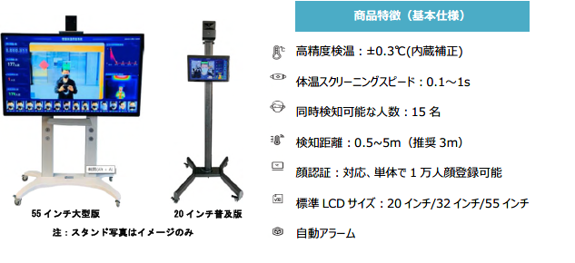 ニュース 設置・移動が簡単で多人数同時検温・マスク検出可能なサイネージ型AI顔認証検温ソリューション販売のお知らせ