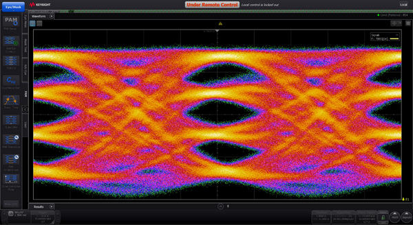 * 優れたアイパターン開口: アイパターン(eye pattern)は伝送システム内の信号の品質を評価するために使用される評価手法であり、目のように見える「アイ(eye)」が開いているほど信号の品質が優れていることを示しています。PAM4のアイパターンでは目のように見える 3 つの「アイ」領域があり、今回、明確に開口する3 つの「アイ」が確認され、セキュアで高品質なデータ伝送が行われていることを示しています。