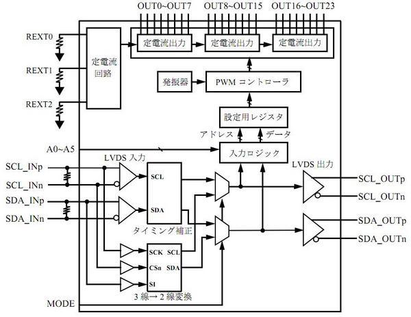 - 3線シリアルCMOSレベルから2線シリアルLVDSへの変換