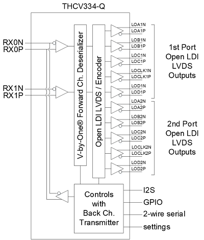 THCV334-QはV-by-One® HS/V-by-One® HSⅡ信号をOpen-LDI(LVDS)信号へ変換するレシーバICです。