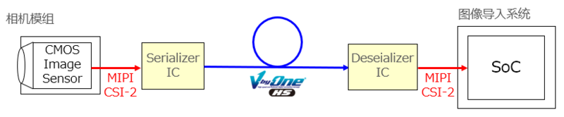 但在工业设备上后装时,有时会与图像处理传感器的距离较远。MIPI相机模组的传输距离最长也只有30cm,基本是不够用的。此时,如与高速串行接口V-by-One HS组合使用,就能解决问题。因为其传输距离能延长至大约15m。