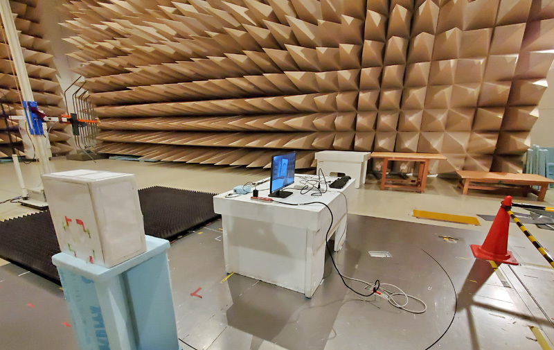 随后,在2020年8月初,团队开始对实现CE标志的自行申报和符合FCC规格所需要的条件展开了调查。花费了大约2个月之后,拣选出了必须的实验种类和符合规格的条件等。几乎与此同时,远距离传输工具的最终版的试作也完成了。这样一来EMC实验的准备工作就完成了。