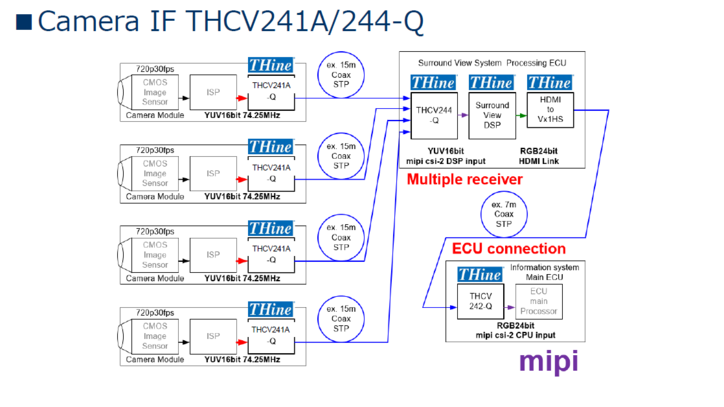 THCV242可接收2組Camera訊號。如下圖的4組Camera System即可使用2個THCV242。各Image Sensor的Reset