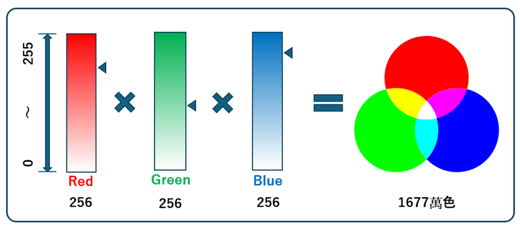 例如,對於解析度,通常要求為8 Bit,也就是256階。如果每個RGB LED的亮度能調整為256階,則可以實現256×256×256約1677萬種顏色的全彩顯示(圖3)。當然,根據不同的應用需求,低於8 Bit的解析度在某些情況下也是可以接受的。