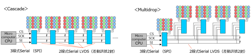 不過,LVDS Interface也存在一些缺點。由於採用差動傳輸方式,相較於Single-Ended傳輸方式,所需的配線數量會增加。雖然「抗共模干擾能力強是值得讚賞的,但我們希望避免因配線數量增加而導致印刷電路板上實裝面積的擴大。」因為這種設計理念的差異,確實有一些電子設備製造商在採用搭載LVDS Interface的LED Driver時猶豫不決。