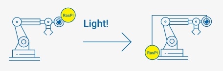 這裡的問題是Raspberry Pi安裝的地方。將Raspberry Pi連接到相機鏡頭模組的Cable只有20cm~30cm長,因此Raspberry Pi也必須連接到機器人手臂上。 不過Raspberry Pi比較重。V2相機僅重約4g(外形尺寸約2.5cm x 約2.4cm x 約0.9cm),而「Raspberry Pi 4 Model B」則是其12倍,大約48g(約9cm x 5.5cm x1.8 cm)。因此,不可避免地會對機器人手臂的驅動控制產生不利影響。 在最壞的情況下,您可能無法準確地抓住物體且無法將其移動到正確位置。